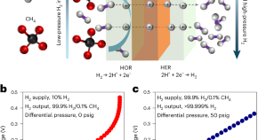 A tandem electrochemical hydrogen pump system achieves high efficiency in purifying hydrogen from dilute sources. With nearly 100% Faradaic efficiency at high current densities, this technology can produce ultrapure hydrogen (>99.999%) from a 10% feed, potentially reducing capital costs by 95% and energy consumption by 65% compared with conventional methods.