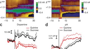 fMRI studies suggest that nucleus accumbens (NAc) activation increases in response to stimuli of different hedonic valence, whereas physiological evidence suggests that NAc neurons show increases in activity for rewarding stimuli and pauses for aversive stimuli. Using cyclic voltammetry, the authors find that patterns of dopamine release and metabolic activity differentiate between rewarding and aversive stimuli.