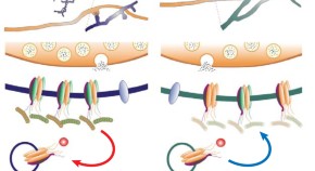 Neurons form synapses with oligodendrocyte precursor cells (OPCs) that may control their maturation and myelination. Key signaling molecules regulating glutamate receptors at neuronal synapses also act in OPCs, but to opposite effect.