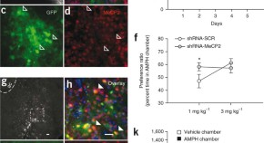 The authors report that MeCP2, a methyl DNA–binding transcriptional regulator, modulates the response to amphetamine in the nucleus accumbens. Using both acute viral manipulation of MeCP2 in mice and hypomorphic Mecp2 mutant mice, they find that MeCp2 both affects mesolimbocortical circuit development and regulates the responses to psychostimulants.