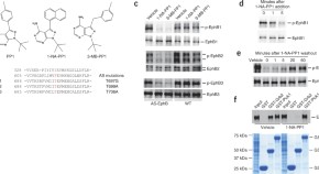 The EphB family of receptor tyrosine kinases can signal bidirectionally and functions in a kinase-dependent and kinase-independent manner. To determine the importance of the kinase activity of EphBs for axonal guidance and synaptogenesis, the authors used a chemical genetic method and generated knock-in mice that allow the kinase activity of EphBs to be inhibited without altering kinase-independent functions of EphBs. They find that specific inhibition of EphB kinase activity had no effect on synaptogenesis, but impaired axonal guidance, thereby implicating the kinase function of EphB in one neuronal process, but not other processes that are nevertheless dependent on EphBs.