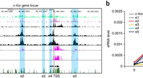 • The c-fos gene is induced by a broad range of stimuli and is commonly used as a reliable marker for neural activity. The authors demonstrate that the combinatorial activation of multiple enhancers surrounding the c-fos gene is a critical mechanism of ensuring robust c-fos gene induction in response to various stimuli.