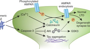 In a mouse model of Alzheimer's disease, the authors find that early loss of AMPA receptors at synapses at onset of cognitive dysfunction is a result of activation of the phosphatase calcineurin by caspase-3. Inhibition of caspase activity rescued both synapse density and fear memory in this model.