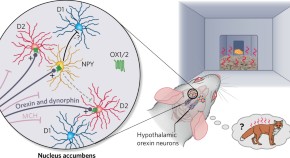 Both nucleus accumbens and orexin play clear roles in motivated behavior, but the functions of orexin projections to accumbens are poorly understood. Blomeley et al. show that this pathway, via specific orexin excitation of dopamine D2 receptor–expressing neurons, can inhibit reward seeking and exploratory drive when danger is perceived.