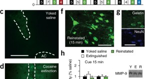Synaptic remodeling in the brain is dependent on the extracellular matrix remodeling mediated by zinc-dependent matrix metalloproteinases (MMPs). Using a rodent model, this study shows that the activity of MMP2 and 9 are differentially increased in the brain region nucleus accumbens after withdrawal from self-administered cocaine, during cue-induced relapse. Along with a similar response following relapse to other drugs of abuse, the study also shows that the increased MMP activity was needed for both relapse behavior and relapse-associated synaptic plasticity that included changes to the glutamate-mediated currents and dendritic spine head diameter.