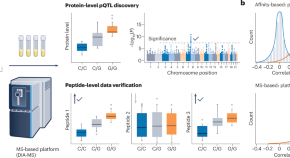 Mass spectrometry-based proteomics demonstrated its increasing analytical power and unique strengths in measuring genome-wide plasma proteomes and identifying protein quantitative trait loci (pQTLs), as reported in a study of over 3,000 Danish children and adolescents.