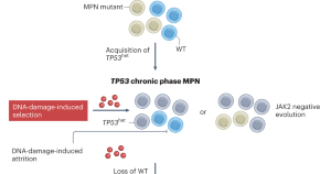 Transformation of a myeloproliferative neoplasm to a secondary acute myeloid leukemia is rare but devastating. Single-cell, multi-omic characterization of hematopoietic stem and progenitor cells now shows the role of inflammation in transformation driven by mutations in TP53, with effects on the mutant clone but also non-mutant counterparts.