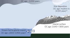 Glacier-derived dissolved organic matter represents a quantitatively significant source of ancient, but bioavailable, carbon to downstream ecosystems. Anthropogenic aerosols supply glaciers with aged organic matter, according to an analysis of organic matter from glaciers in Alaska.