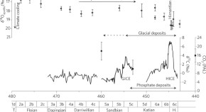 The Late Ordovician period, ending 444 million years ago, was marked by the onset of glaciations. The expansion of non-vascular land plants accelerated chemical weathering and may have drawn down enough atmospheric carbon dioxide to trigger the growth of ice sheets.