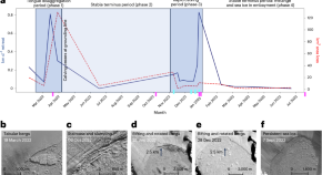 Analysis of satellite remote sensing and geophysical data reveals that following the loss of stabilizing fast ice, an Antarctic Peninsula glacier retreated at a record pace due to a fast calving and flotation process that occurred as it reached an ‘ice plain’, where the ice is lightly resting on bedrock.