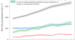 Top-down inversion modelling, coupled with data from ten observing stations across China, reveals that the country’s emissions of hydrofluorocarbons (HFCs) grew during the period 2011–2021. However, over a similar period, non-Annex 1 countries (mostly developing countries under the UN climate framework), excluding China, are shown to be the largest contributors to the global growth in HFC emissions.