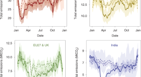 Monitoring of the daily global CO2 emissions in 2020 reveals the spatial–temporal pattern of the drop in emissions due to the impact of the COVID-19 pandemic. The daily CO2 emission changes also reveal different patterns of human activities and fossil CO2 emissions across countries, sectors and periods.