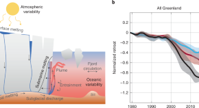 Melting of the edges of the Greenland ice sheet by the ocean since 1979 is — counterintuitively — controlled almost as much by air temperature as by ocean temperature.