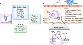 DEL-1 protein interferes with leukocyte adhesion to prevent inflammation. Chavakis and colleagues now show that DEL-1 contributes to tissue resolution after inflammation by promoting macrophage-mediated efferocytosis and M2-like pro-resolving activities.