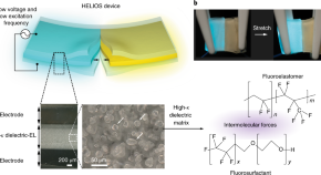 Stretchable and self-healing light-emitting capacitors operating at low frequency and low voltage have been realized using a transparent elastomeric dielectric with high permittivity.