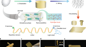Biocompatible and degradable silk materials with programmable mechanical properties can be directly obtained from regenerated amorphous silk using thermal moulding.