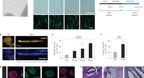 • Somatic cells can be reprogrammed into induced pluripotent stem cells biochemically through the expression of a few transcription factors. It is now shown that aligned microgrooves or nanofibres on cell-adhesive substrates can promote the reprogramming of somatic cells more efficiently through epigenetic regulation of genes related to pluripotency and the mesenchymal-to-epithelial transition. The findings suggest that the epigenetic state can be regulated by variations in cell morphology.