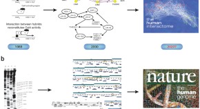 The idea of using hybrid proteins containing transcription factor domains to analyze protein-protein interactions was described in 1989. Over the past 25 years, this method has begun to reveal the complex protein networks that underlie cellular behavior.