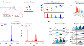 Current single-cell metabolomics methods show low sensitivity and limited coverage of small-molecule metabolites. We developed an ion mobility-resolved mass cytometry technology that incorporates selective ion accumulation and cell superposition strategies to deliver high sensitivity and deep coverage, which captured over 5,000 metabolic peaks and about 800 metabolites from individual cells in a high-throughput manner.