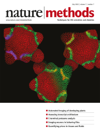 The cover image shows Arabidopsis thaliana inflorescence meristems expressing fluorescent protein reporters and stained with a vital dye. The image is a blend between raw confocal microscopy data and a three-dimensional rendering of cells segmented using the MARS algorithm. Cover design by Erin Dewalt based on an image provided by Christophe Godin. Article p547, News and Views p506
