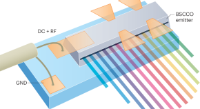The frequency of coherent terahertz waves radiated from a single superconducting emitter can be electronically modulated on a chip with up to 40 GHz bandwidth, paving the way for high-data-rate and ultrafast terahertz wireless communications.