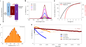 Controlling the intrinsic doping of lead-free perovskites enables near-infrared LEDs emitting at 948 nm with a peak radiance of 226 W sr–1 m–2 and a half-lifetime of 39.5 h.