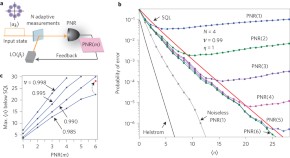 A quantum receiver based on photon-number-resolving detection and adaptive feedback is demonstrated. It can discriminate quadrature-phase-shift-keying coherent signals with error below the standard quantum limit.