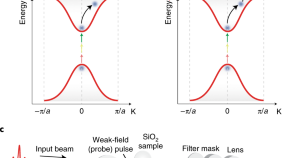 Light-field-induced electron dynamics in a silicon dioxide dielectric system are exploited to directly measure the attosecond relative electronic delay response in the dielectric system, potentially extending the speed of data processing and information encoding into the petahertz realm.