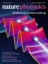 Terahertz accelerators scale upArtistic impression of a linear relativistic electron accelerator powered by laser-generated, multicycle terahertz pulses. Longitudinal terahertz electric fields propagating through a rectangular dielectric-lined waveguide are phase-velocity matched to the relativistic electron bunches to improve the interaction. The concept could ultimately yield multistaged, high-gradient acceleration of particle beams.