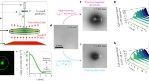 The ability of phototactic microorganisms to move towards optimal light intensities is exploited to generate fluid flows on scales several orders larger than the swimmers themselves. These flows are shown to function as hydrodynamic tweezers.