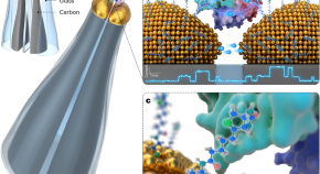 A protocol for fabricating quantum mechanical tunneling probes via carbon and gold deposition, functionalized by surface modifications such as biotinylated thiols, that enable conductance to be measured in single proteins in solution for up to several hours.