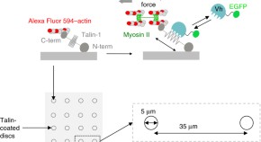 Biochemical characterization of mechanosensitive proteins is achieved in a protocol for forming actomyosin cables between protein-coated discs on a micropatterned glass coverslip. Interaction with a fluorescently labeled ligand is analyzed by microscopy.