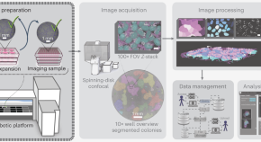 An automated workflow for culturing human induced pluripotent stem cells expressing fluorescently tagged proteins, and seeding them on 96-well optical-grade, glass-bottom plates for high-quality, live-cell three-dimensional microscopy on a large scale.