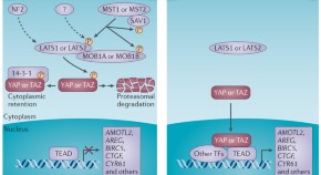 YAP and TAZ are the major downstream effectors of the Hippo pathway. This Progress article summarizes the latest findings regarding the biological functions of YAP and TAZ, and their role in connecting the Hippo pathway with other relevant pathways in cancer.