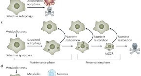 Cells with defects in the autophagic pathway are sensitized to apoptosis in response to metabolic stress, but, paradoxically, autophagy defects are associated with increased tumorigenesis. How can this paradox be resolved?