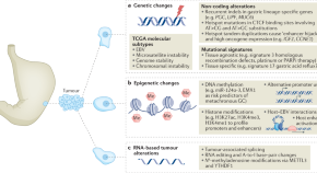 This Review discusses recent foundational and translational advances in gastric cancer genomics and epigenomics and highlights how these findings have improved our understanding of basic mechanisms driving gastric cancer biology as well as emerging preclinical targets.