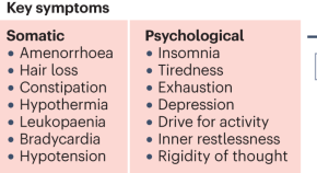 Case studies of patients with anorexia nervosa revealed psychological improvements upon treatment with recombinant human leptin, including an alleviation of the entrapment in this eating disorder. Hypoleptinaemia induced by loss of adipose tissue mass might trigger psychological changes observed in starvation. Accordingly, leptin analogues might prove beneficial for treatment of anorexia nervosa.