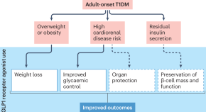 Adult-onset type 1 diabetes mellitus differs from the early onset form in terms of residual endogenous insulin secretion, comorbidities and baseline cardiorenal risk. Adjunct therapy with glucagon-like peptide 1 receptor agonists could offer benefits in this population of patients by preserving β-cell mass and function while also contributing to cardiorenal risk mitigation.