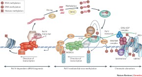 RNA-directed DNA methylation (RdDM) is a major mechanism of transcriptional gene silencing in plants that is mediated through small interfering RNAs (siRNAs) and plant-specific RNA polymerases. This Review summarizes our latest understanding of RdDM, including its genomic targets, molecular mechanisms (such as emerging non-canonical pathways) and diverse biological roles.
