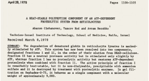 Aaron Ciechanover describes the discovery of the ubiquitin system and the analysis of its components using a 'classical' biochemical approach. These findings, which were published in a relatively modest journal, would prove to be ground-breaking.