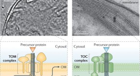 Mitochondria and chloroplasts import the vast majority of their proteins across two membranes. Although the import and initial sorting of precursor proteins is mediated by translocases that are functionally similiar in the outer membrane of both organelles, they each have a unique mode of translocation.