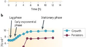 Bacterial populations produce persisters, cells that neither grow nor die in the presence of bactericidal agents, and are tolerant to antibiotics. The tolerance of persisters to antibiotics is important in persistent infections, and is especially significant in the recalcitrance of biofilms to antibiotics during infection.