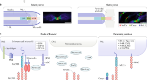 The formation of the nodes of Ranvier in myelinated axons involves a specific clustering of ion channels. In this Review, Rasband and Peles describe two independent, glia-directed mechanisms that converge on the axonal cytoskeleton to cluster and maintain nodal ion channels.