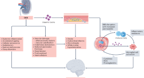 The prevalence of cognitive dysfunction among people with chronic kidney disease (CKD) is disproportionately high compared with that in the general population. This Review examines current evidence on key drivers of cognitive impairment in people with CKD, and highlights gaps in knowledge and potential therapeutic targets.
