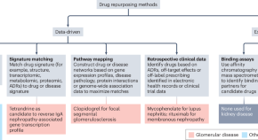 Drug repurposing could expand the therapeutic options available to patients with glomerular disease. Here, the authors examine different approaches to the identification of drug candidates, consider current immunosuppressive and non-immunological options and discuss strategies to maximize drug repurposing in glomerular disease.