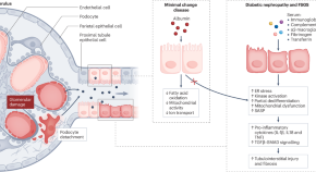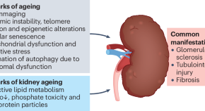 The ability of the kidney to function normally declines with advancing age. This Review describes ageing processes that are relevant to age-related kidney diseases and the pathological mechanisms of chronic kidney disease in the context of premature ageing, as well as implications for diagnostic and therapeutic interventions.