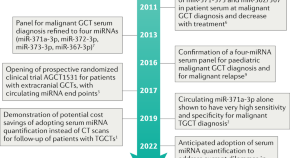 Current clinical issues in testicular germ cell tumour management include limited sensitivity and specificity of conventional biomarkers and, therefore, reliance on serial CT imaging in follow-up monitoring, as well as poor ability to risk stratify patients. Circulating microRNAs are likely to help overcome these challenges and, importantly, could offer cost savings to health-care systems.