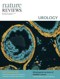 Cover image supplied by Sudeh Izadmehr, Department of Genetics and Genomic Sciences, Icahn School of Medicine at Mount Sinai, New York, NY 10029, USA. The image shows a high-power fluorescence microscopy view of a FVB/N mouse prostate. Immunofluorescence staining was performed using DAPI (4',6-diamidino-2-phenylindole) to stain nuclei and monoclonal antibody against α-smooth muscle actin to identify smooth muscle cells. Smooth muscle cells are elongated, tapering at each end with a centrally located nucleus. They encircle the basal epithelial, luminal epithelial, and neuroendocrine cells of each prostate gland. In prostate adenocarcinoma, breaks appear in the perimeter of circumferential smooth muscle cells; this discontinuity is a marker of invasion.