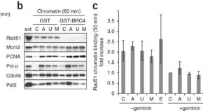 Rad51 plays a central role in homologous recombination pathways. Now work with Xenopus laevis egg extracts shows that Rad51 prevents formation of DNA gaps at or behind replication forks, which are dependent on Mre11 nuclease activity.