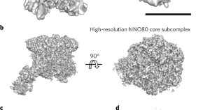 The cryo-EM structure of the human INO80 chromatin-remodeling complex reveals the architecture of the complex centered around a RUVBL1–2 AAA+ heterohexamer.